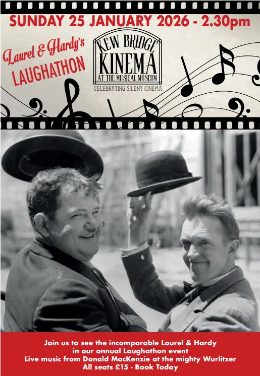The Kew Bridge Kinema at the Musical Museum, is unique! It is the only repertory series which features live Wurlitzer organ accompaniment to silent classic films in the UK.