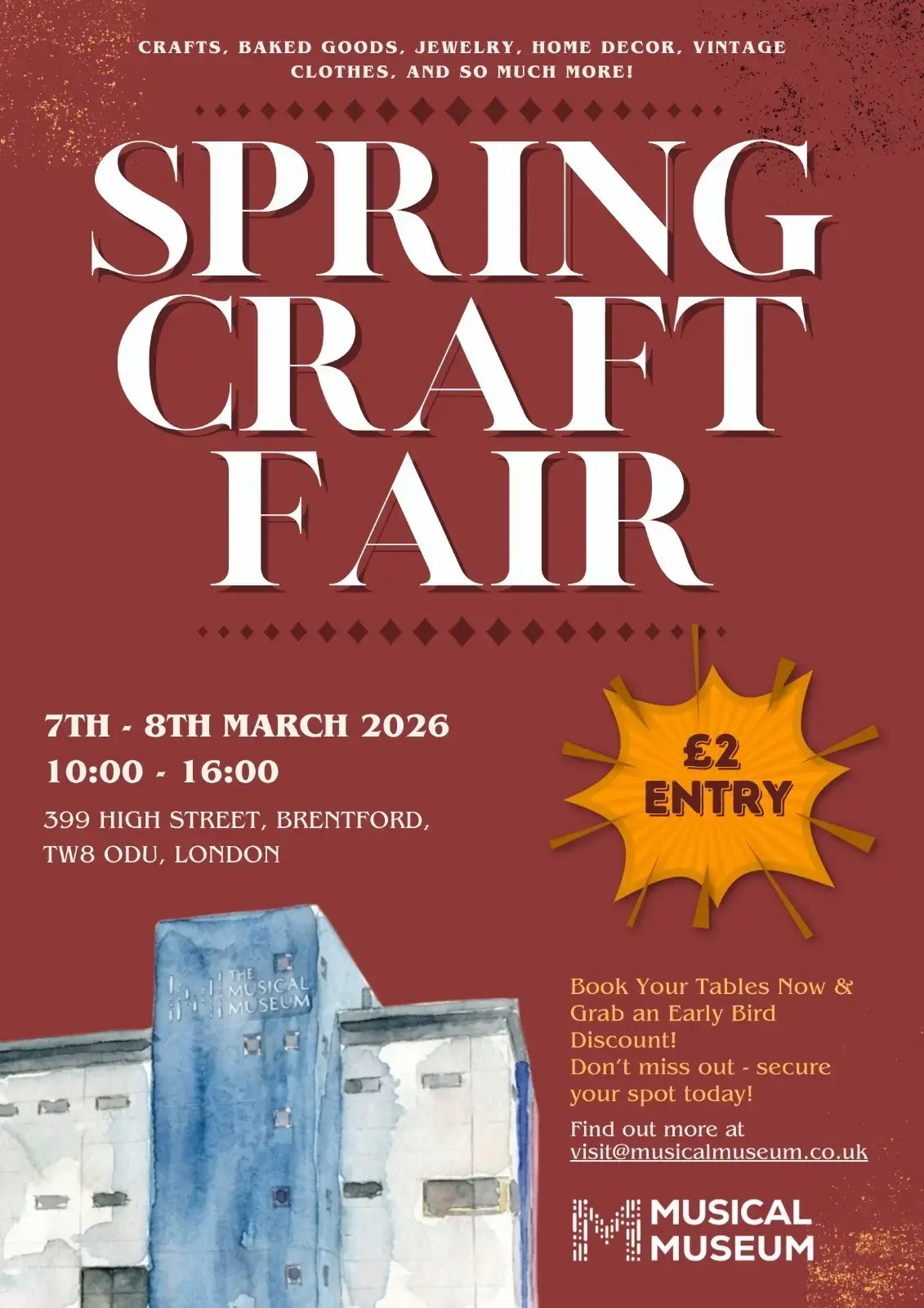 Crafts, Baked Goods, Jewellery, Home Decor, Vintage Clothes....and more!